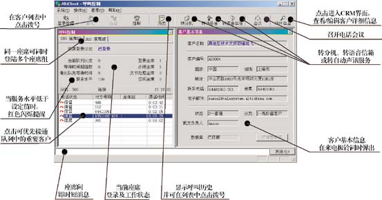 | 拿起電話時問:"您是哪位?",邊通話,邊查找客戶的資料 | 電話振鈴的同時,座席電腦屏幕自動彈出客戶信息,并可添加客戶的定貨或服務(wù)信息 |