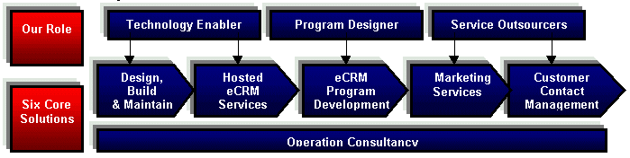 依靠優(yōu)秀的人才、可靠的質(zhì)量以及專業(yè)的運作方面的卓越表現(xiàn)營管理,我們不僅能夠提高您的客戶滿意度,而且能夠幫助您成功實施客戶關(guān)系管理策略!依托優(yōu)秀的人才、可靠的質(zhì)量以及專業(yè)的運作方面的卓越管理,我們不僅能夠提高您的客戶滿意度,而且能夠幫助您成功實施客戶關(guān)系管理策略! 案例分享 電訊盈科客戶服務(wù)聯(lián)系服務(wù)中心已經(jīng)在不同的行業(yè)中建立了廣泛的、富有成效的客戶基礎(chǔ)。在亞洲地區(qū),我們?yōu)槎嗉掖笮偷谋镜丶翱鐕咎峁┓⻊?wù)。下列是我們公司在客戶關(guān)系管理方面的一些成功案例: 銀行保險業(yè) 美國大通銀行(世界知名的大銀行)授權(quán)我們?yōu)槠湓O(shè)計、建立并管理一個擁有約300個人工座席的綜合客戶聯(lián)系客戶服務(wù)中心。通過采應(yīng)用我們一流的客戶服務(wù)中心技術(shù)及設(shè)施,大通銀行的服務(wù)效率便在最初的兩個月內(nèi)就,提高了15%。 AXA國衛(wèi)集團指定我們?yōu)槠鋵嵤╇娫挔I銷項目。作為一種有效的銷售渠道,客戶服務(wù)代表的突出表現(xiàn)給AXA創(chuàng)造了大量的銷售機會。 政府與機構(gòu) 香港特別行政區(qū)政府授權(quán)我們設(shè)計并建立一個綜合的呼叫中心,以集中管理涉及多個政府部門業(yè)務(wù)的咨詢。為此,我們招聘并為其培訓(xùn)了一支只約200人的專業(yè)客戶服務(wù)隊伍。 國泰航空公司(全球最大的航空公司之一)與我們簽署協(xié)議,由我們?yōu)槠浣ⅰ⒐芾聿⑦\營一個全球性的呼叫中心,處理來自“馬可孛羅會波羅俱樂部”及“亞洲萬里通”(常旅客計劃)會員的查詢。目前,這個中心通過100多個客戶服務(wù)專員,向全球850個地區(qū)的客戶提供15種語言的服務(wù)。 IT與通訊業(yè) 微軟(臺灣)授權(quán)我們管理其客戶服務(wù)中心,提供3種個語言的服務(wù)。每一個客戶服務(wù)代表為此接受了有關(guān)微軟250多種產(chǎn)品的綜合培訓(xùn)。 諾基亞委托我們管理其多渠道的客戶聯(lián)系客戶服務(wù)中心,為諾基亞客戶提供全面客戶服務(wù)。為了保持保持高水準(zhǔn)優(yōu)質(zhì)、持續(xù)的服務(wù),我們?yōu)槠溟_發(fā)并維護一個在線知識庫,以方便每個客戶服務(wù)代表獲取最新的產(chǎn)品信息或了解特殊的運營過程,保證以便及時準(zhǔn)確的地得向顧客戶提供服務(wù)。 中國聯(lián)通與我們正式簽訂合同,為其提供系統(tǒng)及運營管理方面的顧問服務(wù),目的是通過我們專業(yè)的顧問服務(wù),提升中國聯(lián)通現(xiàn)有的服務(wù)水平,,,以應(yīng)對中國入世后電信行業(yè)的市場競爭。 消費零售業(yè) 松下電器(中國)與我們簽訂合約,由我們來幫助管理其采用西貝爾(Siebel)系統(tǒng)建立的、全國性綜合管理客戶服務(wù)熱線中心,。這個使用西貝爾(Siebel)系統(tǒng)建立的綜合客戶服務(wù)中心將向為松下電器(中國)所有的客戶提供服務(wù)。 香港快達票與我們簽署了一個長期合約,由我們來幫助為其處理大范圍的訂票業(yè)務(wù)。我們公司所提供的服務(wù)包括:預(yù)定票務(wù)預(yù)定、座位安排、門票印制、送遞票、網(wǎng)上訂票以及其它相關(guān)的服務(wù)。