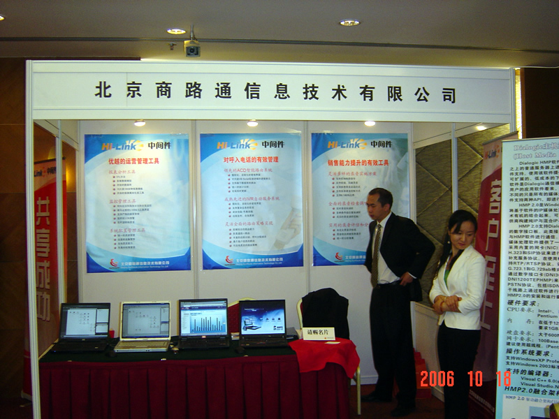 。。2006年10月18日,2006保險業(yè)呼叫中心應(yīng)用暨電話營銷高峰研討會在北京天鴻科園大酒店隆重召開,以下是展廳參觀的相關(guān)圖片報道: