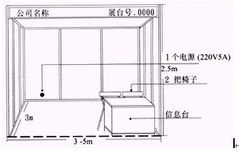 標(biāo)準(zhǔn)展臺價(jià)格包括三面墻板(邊角展臺為兩面墻板)、楣板及中英文公司名稱、5安培電源、地毯、兩只日光燈(15平方米展臺為三只日光燈)、一個(gè)信息臺、兩把椅子、一個(gè)廢紙簍。