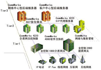 3Com的子公司CommWorks的統一消息方案由兩部分組成:通用信息接收箱功能模塊和通用連接手段。此系統是CommWorks三層體系結構的主要應用。CommWorks三層體系結構是一個多用途的、多服務平臺,使得服務商可以成功地升級他們的網絡和增加增值服務。