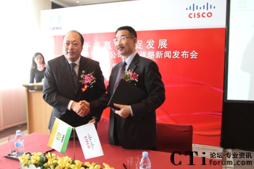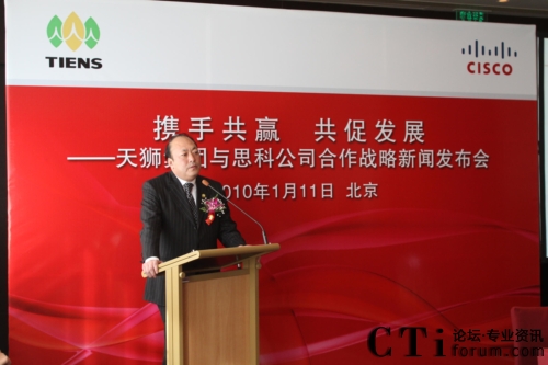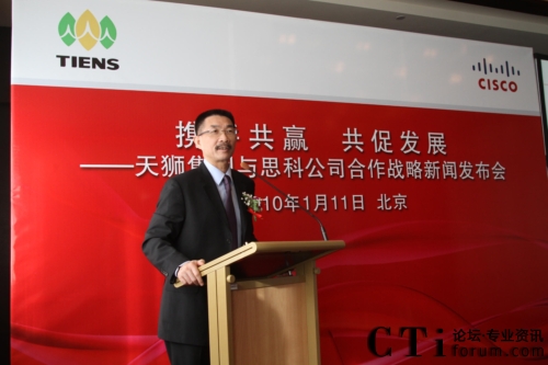 CTI論壇(ctiforum)1月12日消息(記者 張塵):2010年1月11日,北京——“攜手共贏 共促發(fā)展——天獅集團(tuán)與思科公司戰(zhàn)略項(xiàng)目新聞發(fā)布會”在北京召開,雙方共同宣布,天獅集團(tuán)國際健康產(chǎn)業(yè)園網(wǎng)絡(luò)平臺成功啟用,并正式達(dá)成合作戰(zhàn)略。天獅集團(tuán)董事長兼總裁李金元先生與思科全球副總裁、思科中國副董事長兼總裁林正剛先生出席新聞發(fā)布會,并進(jìn)行簽約儀式。通過本次強(qiáng)強(qiáng)聯(lián)合,思科面向服務(wù)的網(wǎng)絡(luò)架構(gòu)(SONA)全面部署于天獅集團(tuán)國際健康產(chǎn)業(yè)園,為天獅集團(tuán)業(yè)務(wù)的穩(wěn)定持續(xù)發(fā)展以及信息化水平的進(jìn)一步提升提供了可靠保證,同時也為雙方未來更深層次的合作打下了堅(jiān)實(shí)的基礎(chǔ)。