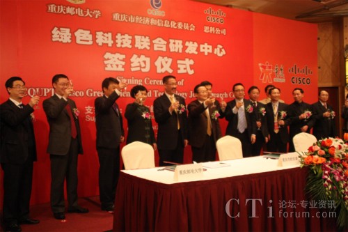 CTI論壇(ctiforum)2月3日消息(記者 潘婷):2月3日上午,思科公司與重慶郵電大學(xué)正式簽訂合作協(xié)議,共建“重慶郵電大學(xué)-思科綠色科技聯(lián)合研究實驗室”。“綠色科技聯(lián)合研究實驗室”的成立是思科履行其致力于推動中國創(chuàng)新和可持續(xù)發(fā)展承諾的重要舉措。此次合作中雙方將共同推動下一代互聯(lián)網(wǎng)、傳感器網(wǎng)絡(luò)以及綠色科技等領(lǐng)域的研發(fā),推進應(yīng)用推廣和產(chǎn)業(yè)化發(fā)展,實現(xiàn)產(chǎn)學(xué)研一體化,幫助和支持重慶本土企業(yè)提高綠色科技創(chuàng)新的素質(zhì)和能力,進而支持中國發(fā)展綠色經(jīng)濟、節(jié)能減排的長期戰(zhàn)略。