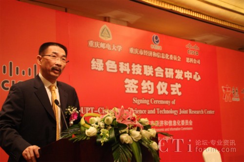 重慶市副市長童小平與思科公司全球副總裁林正剛出席簽約儀式,并共同為“綠色科技聯(lián)合研究實驗室”揭牌。儀式由重慶市政府人員副秘書長廖慶軒主持,重慶市經(jīng)濟與信息化委員會黨組書記沐華平副主任作為見證人,與重慶郵電大學(xué)校長陳流汀教授、思科中國研發(fā)中心總經(jīng)理常詢傳博士共同在協(xié)議書上簽字,思科公司和市級相關(guān)部門負(fù)責(zé)人參加了簽約儀式。