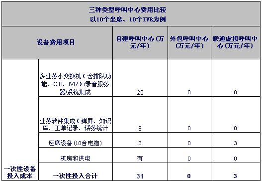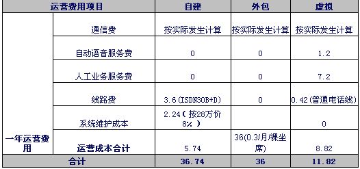 注1:自建和外包呼叫中心按目前市場平均價計算。虛擬呼叫中心按聯(lián)通標(biāo)準(zhǔn)資費(fèi)計算。外包坐席按裸坐席計算。