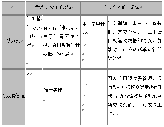 長(zhǎng)期以來,普通有人值守公話采用計(jì)費(fèi)器+電話的方式進(jìn)行通話和計(jì)費(fèi),這種方式的弊端是費(fèi)率固話在計(jì)費(fèi)器上,費(fèi)率、時(shí)長(zhǎng)、話單等都在計(jì)費(fèi)器本地控制,運(yùn)營(yíng)商無法了解各公話的計(jì)費(fèi)情況,公話代辦戶不按計(jì)價(jià)器亂收費(fèi)、篡改計(jì)費(fèi)器電路以達(dá)到多收費(fèi)的現(xiàn)象時(shí)有發(fā)生,嚴(yán)重侵害消費(fèi)者利益,由此帶來的大量計(jì)費(fèi)糾紛又影響了運(yùn)營(yíng)商聲譽(yù)和管理,集中管理控制有人值守公話勢(shì)在必行。