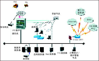本項(xiàng)目采用新太科技交互式電話會(huì)議系統(tǒng)2.0版,系統(tǒng)各組成部分見(jiàn)圖1。前端接入設(shè)備采用SUNTEK-IPS數(shù)字排隊(duì)機(jī),負(fù)責(zé)多方電話會(huì)議用戶和其他業(yè)務(wù)用戶接入的交換排隊(duì)、自動(dòng)語(yǔ)音資源提供、座席服務(wù)資源提供、錄音、計(jì)費(fèi)等等。SUNTEK-IPS數(shù)字排隊(duì)機(jī)是新太科技最新一代軟交換平臺(tái),是整個(gè)系統(tǒng)平臺(tái)的核心。它綜合了新太科技?xì)v代平臺(tái)的優(yōu)勢(shì),采用世界上最先進(jìn)的軟交換(包交換)技術(shù)和CompactPCI技術(shù),支持主控CPU卡冗余和熱拔插,擁有更大規(guī)模的交換系統(tǒng)總線(CompactPCI的CTBus總線共有4096個(gè)時(shí)隙,理論上,單個(gè)機(jī)框可以支持4k×4k的交換)。SUNTEK-IPS數(shù)字排隊(duì)機(jī)基于自主開(kāi)發(fā),擁有自主產(chǎn)權(quán),保證了極高的性價(jià)比,已經(jīng)通過(guò)了信息產(chǎn)業(yè)部入網(wǎng)認(rèn)證。SUNTEK-IPS數(shù)字排隊(duì)機(jī)現(xiàn)已在十多個(gè)省成功開(kāi)展全省業(yè)務(wù)的事實(shí),證明了它具備技術(shù)先進(jìn)、可靠性強(qiáng)等特點(diǎn)。