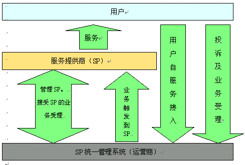 在對(duì)SP統(tǒng)一管理的過程中,SP、新太科技、運(yùn)營商、運(yùn)營商用戶組成了一條完整的價(jià)值鏈,如下圖所示: