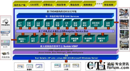 新太視頻監(jiān)控聯(lián)網管理平臺采用J2EE開放式架構,可以在WINDOWS/LINUX操作系統(tǒng)下運行,具有強大的伸縮性。