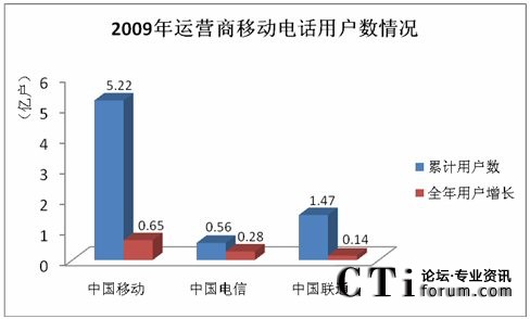 截至2009年12月31日,國內(nèi)移動(dòng)電話用戶累計(jì)達(dá)到74738.4萬戶,中國移動(dòng)的用戶總數(shù)已達(dá)到5.22億戶,累計(jì)客戶凈增長(zhǎng)6503.3萬戶,在三大運(yùn)營商中,中國移動(dòng)的用戶保有量和每月新增用戶數(shù)份額仍然最大。