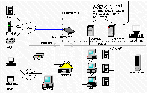 電信1000號客戶服務中心,集成了計算機網絡技術和計算機語音集成技術(CTI)。系統(tǒng)結構可分為三部分:CTI硬件平臺、LAN網絡平臺、客戶服務軟件系統(tǒng)。東進公司推出了基于板卡的CTI硬件方案,以七號信令網關進行協(xié)議轉換。此硬件平臺具有以下優(yōu)點: