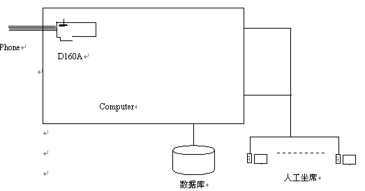 整個系統(tǒng)主要由CTI服務(wù)器(語音處理服務(wù)器)構(gòu)成,結(jié)構(gòu)圖如下;跂|進(jìn)D160A的CTI服務(wù)器方便地實(shí)現(xiàn)了 呼叫排隊: 外線呼入時,將呼叫自動分配到空閑座席; 座席全忙時,將呼叫進(jìn)行排隊,待座席空閑時,自動轉(zhuǎn)接。 自動語音提示:外線呼入時,自動播放提示語音"您好,歡迎使用XX 系統(tǒng)、自動服務(wù)請按0,人工服務(wù)請按1;如果選擇人工服務(wù),座席臺全忙時,放提示音"服務(wù)臺正忙,請稍候"。自動服務(wù):播放語音提示,指導(dǎo)客戶操作。顧客可以利用音頻按鍵輸入信息;根據(jù)客戶的音頻按鍵播放相應(yīng)的信息,或者進(jìn)入下一級菜單。坐席服務(wù):外線撥入系統(tǒng)后,如果選擇人工服務(wù),系統(tǒng)將來話與臺內(nèi)座席接通。