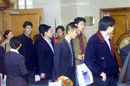 意外之二:簽到時大家一般都擁在桌旁,這次工程師們卻都很"可愛",看見人多,很快自動在會場外排成了一條長龍。排隊人數(shù)之多有商場促銷現(xiàn)場之感,隊伍之整齊又令人懷疑是在軍訓。