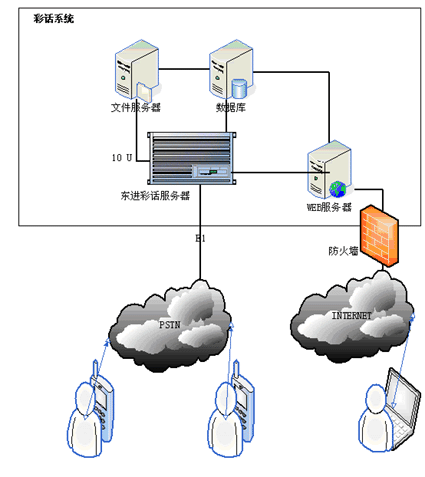 用戶在撥打電話時(shí)可撥打本系統(tǒng)特服號(hào)xxxxx+被叫電話號(hào)碼,系統(tǒng)將接通其指定的被叫電話號(hào)碼,同時(shí)加入背景音樂功能,用戶在系統(tǒng)接通被叫號(hào)碼后,在與被叫方進(jìn)行通話的過程中,就可以使用事先設(shè)定的背景了。