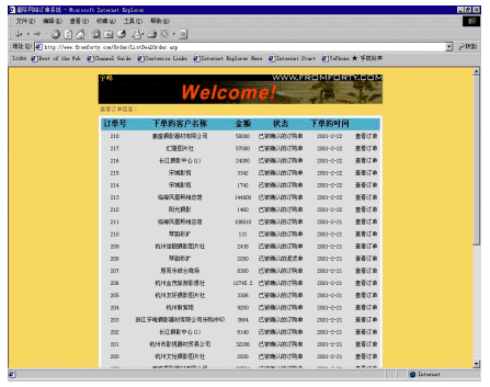 訂購單查閱可以使用戶隨時(shí)都能查看以前和現(xiàn)在的訂購記錄,并且可以查詢訂單的詳細(xì)信息。對(duì)于尚未確認(rèn)的訂購單和退貨單,可以在此確認(rèn)或刪除。