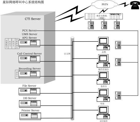 系統(tǒng)主要由座席卡、數(shù)據(jù)庫(kù)服務(wù)器等硬件設(shè)備和系統(tǒng)應(yīng)用軟件構(gòu)成。它以電話(huà)服務(wù)為主要方式、結(jié)合對(duì)計(jì)算機(jī)信息系統(tǒng)的資料數(shù)據(jù)的統(tǒng)計(jì)、分析、運(yùn)用,為客戶(hù)提供全方位的服務(wù)。