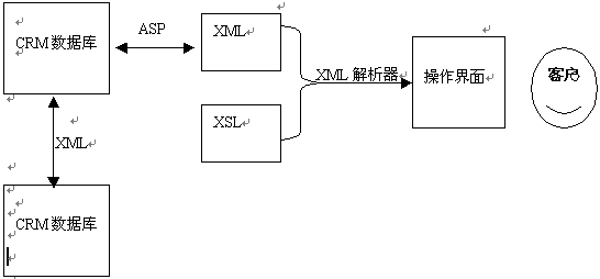 包括客戶資料,銷售報(bào)表等相關(guān)的客服信息都存儲(chǔ)在數(shù)據(jù)庫中,通過ASP應(yīng)用程序取出需要的數(shù)據(jù)生成符合條件的XML文檔,再通過安裝在服務(wù)器端的XML解析器按照預(yù)先設(shè)定的排版樣式XSL解析XML文檔,最后生成符合條件的HTML格式的CRM操作界面呈現(xiàn)在客戶面前?蛻魯(shù)據(jù)可能來自不同的數(shù)據(jù)庫,并且都有各自不同的復(fù)雜格式。但客戶與這些數(shù)據(jù)庫間只通過一種標(biāo)準(zhǔn)語言進(jìn)行交互,那就是XML。由于XML的自定義性及可擴(kuò)展性,它足以表達(dá)各種類型的數(shù)據(jù)?蛻羰盏綌(shù)據(jù)后可以進(jìn)行處理,也可以在不同數(shù)據(jù)庫間進(jìn)行傳遞。