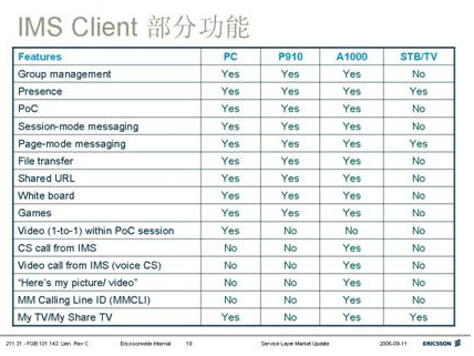 不僅僅在PC終端上,我們也在電視終端和移動(dòng)終端同樣實(shí)現(xiàn)了所有這些業(yè)務(wù),這是真正的四重播放。它完全基于商用的IMS網(wǎng)絡(luò)技術(shù)。