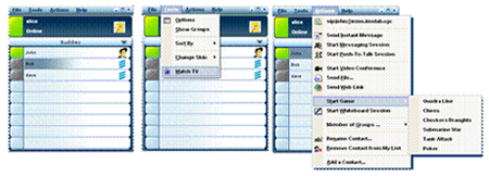圖5:我們在統(tǒng)一的界面下實(shí)現(xiàn)了IM、協(xié)同工作(白板)、電視和游戲等。