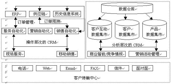 CRM系統(tǒng)中的客戶數(shù)據(jù)從何而來呢?最初,企業(yè)通過面對面接觸的方式和電話聯(lián)絡的方式收集客戶數(shù)據(jù),隨著計算機和網(wǎng)絡的出現(xiàn)和發(fā)展,通過Web、電子郵件等逐漸成為越來越受歡迎的、方便迅速、且成本低廉的接觸方式?傊,我們需要考慮到客戶現(xiàn)在及未來可能出現(xiàn)的所有客戶聯(lián)絡方式,使客戶可以在任何地方任何時候通過任何方式獲取企業(yè)提供的服務,使客戶不會抱怨因企業(yè)不支持某種聯(lián)絡方式而無法獲得企業(yè)產(chǎn)品信息、服務信息。因此,我們的CRM系統(tǒng)必須是支持多種聯(lián)絡渠道的客戶接觸中心,即多媒體客戶接觸中心。