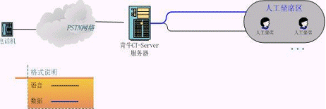 青牛CT-Server服務(wù)器由語(yǔ)音板卡加上青牛CT-Server軟件包組成,其特點(diǎn)是安裝容易、價(jià)格低。這種類型的呼叫中心已經(jīng)具有了語(yǔ)音導(dǎo)航和人工服務(wù)的功能,可以處理小壓力的客戶呼叫了。