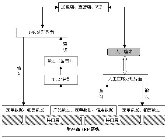 集成項目:與生產(chǎn)商ERP系統(tǒng)集成,增加人工座席應用和IVR應用