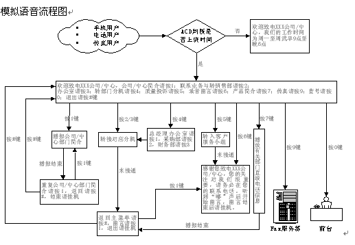 - 本系統(tǒng)的服務(wù)內(nèi)容包括:企業(yè)與政府部門簡介,產(chǎn)品與服務(wù)簡介,人工服務(wù),轉(zhuǎn)部門分機,呼叫轉(zhuǎn)移,部門直線電話號碼查詢,質(zhì)量與服務(wù)投訴,錄音留言等。