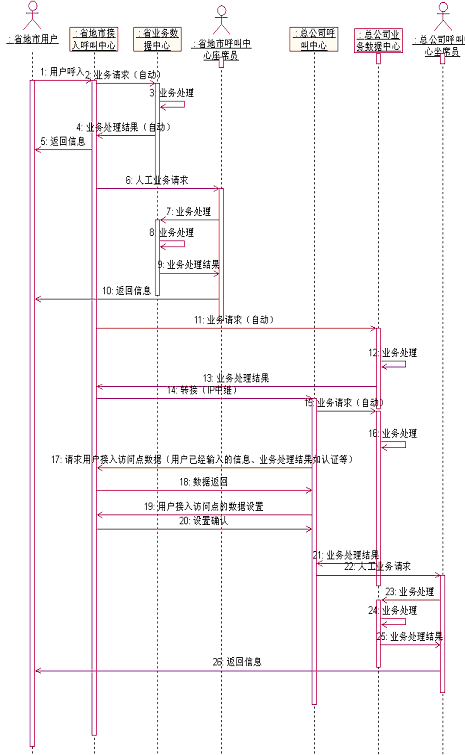 本地用戶請求本地信息或向本地話務員咨詢時,由本地呼叫中心直接處理,如果請求其他節(jié)點的服務,由總公司的呼叫中心實現集中控制,并請求用戶在呼叫接入點已經輸入的信息和業(yè)務處理結果等,將其轉入相關處理人員或應用程序,語音和數據的轉接同步完成,保證用戶獲得最個性化的服務。