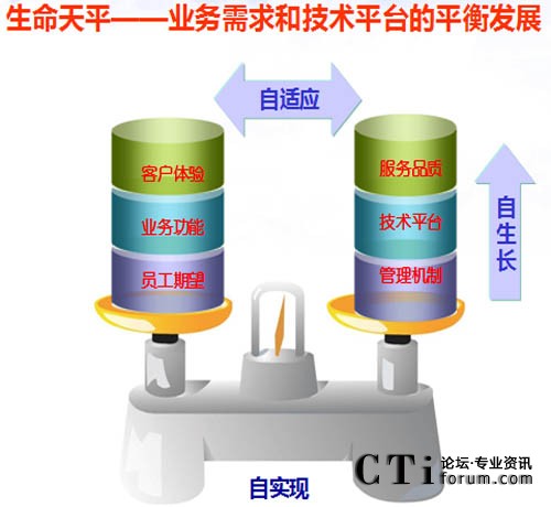“生命天平”所體現(xiàn)的聯(lián)絡(luò)中心運(yùn)營(yíng)管理是一個(gè)動(dòng)態(tài)持續(xù)的過(guò)程,客戶體驗(yàn)、業(yè)務(wù)功能和員工期望是不斷變化的,這就要求平臺(tái)要具有生命力,要不斷滿足客戶和業(yè)務(wù)新的需求,能夠主動(dòng)的根據(jù)客戶體驗(yàn)提升服務(wù)品質(zhì),跟隨業(yè)務(wù)功能變化提升技術(shù)平臺(tái),結(jié)合員工期望,完善和改進(jìn)管理機(jī)制。使聯(lián)絡(luò)中心始終處于自生長(zhǎng)、自適應(yīng)、自實(shí)現(xiàn)的平衡調(diào)節(jié)過(guò)程中。