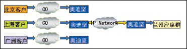 目標(biāo)服務(wù)客戶分散于各地,而客戶服務(wù)中心的座席集中于一地,通過IP將各地話務(wù)路由到座席所在地進(jìn)行電話服務(wù),大大節(jié)省呼叫中心座席的人工成本和通訊成本。