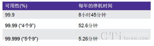 下表顯示了24x7x365全天候系統(tǒng)的可用性。聯(lián)絡中心的可用性以“正常運行時間”或者解決方案用于適當處理客戶互動的時段來表示。