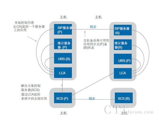 除了提供多個解決方案組件級的高可用性之外,高可用性功能也被融入到了管理框架中。圖4作為假設(shè)系統(tǒng)配置顯示了Genesys系統(tǒng)中高可用性管理的幾個重要方面。通過此類架構(gòu),解決方案控制服務器(SCS)管理著系統(tǒng)中所有Genesys組件的服務狀態(tài),包括啟動和停止組件以及管理它們的高可用性主/備狀態(tài)等。SCS與本地控制代理(LCA)的多個實例共同運行。每個物理主機上面都安裝有LCA的一個實例,用于在SCS與主機上面安裝的單個組件之間提供接口。