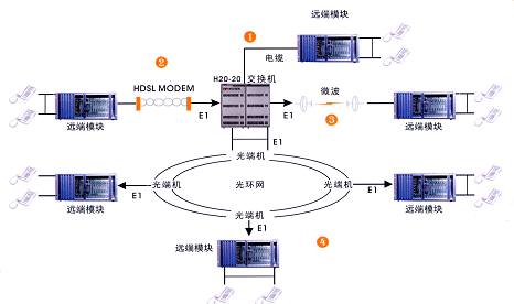 1)遠端模塊通過 SDH 或 PDH 光端機 與交換機連接:這是用得最多的方式。光纖具有良好的穩(wěn)定性和傳輸特性,使得系統(tǒng)最穩(wěn)定。