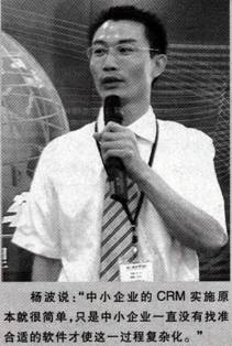楊波說:“中小企業(yè)的CRM實(shí)施原本就很簡單,只是中小企業(yè)一直沒有找準(zhǔn)合適的軟件才使這一過程復(fù)雜化!
