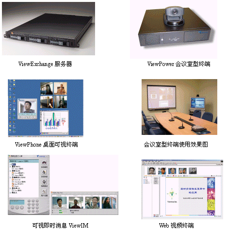 如下圖所示,ViewOffice由會議室型終端ViewPower,客戶端軟件ViewPhone,客戶端即時消息軟件ViewIM,多點控制服務(wù)器ViewExchange