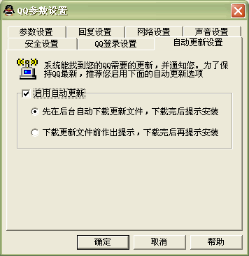 在QQ 2003中新增加了一項自動更新的功能,這樣在騰訊推出新版QQ之后,可以自行進(jìn)行下載和安裝,省去用戶麻煩。