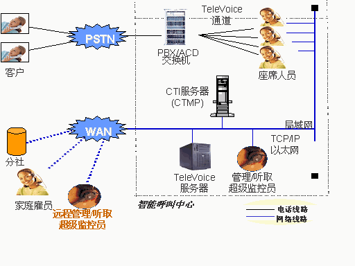 遠(yuǎn)程家庭辦公雇員支持:錄音裝備和家庭辦公雇員個(gè)人電腦之間,通過專用線、ADSL 或 ISDN 等, 甚至把在家進(jìn)行的通話內(nèi)容存放到總部的服務(wù)器中做錄音保存和控制