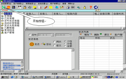 如果沒有上述兩個畫面,則應(yīng)雙擊桌面的前臺和后臺圖標(biāo),用以啟動該程序,也可以選擇"開始" --》廣播短信平臺--》前臺(后臺)實現(xiàn)啟動。