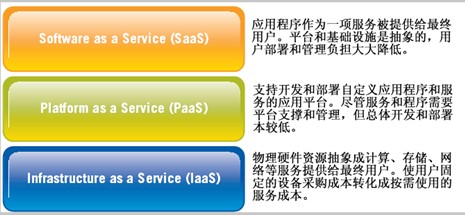 當(dāng)然,其它資源也可以通過(guò)服務(wù)的模式提供給用戶,比如CaaS,Communication as a Service通信即服務(wù),但我們通常把這些服務(wù)也規(guī)到以下三類當(dāng)中。