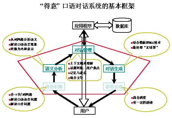 "得意"智能互動信息服務(wù)系統(tǒng)是技術(shù)優(yōu)越而適用性好的自然語言理解系統(tǒng),具備支持上下文相關(guān)分析(包括省略分析)、話題自由變換、人機(jī)混合主導(dǎo)以及口語對話等技術(shù)特點(diǎn)。