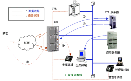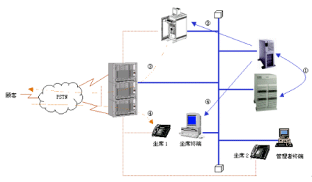 ④ 如果與顧客通話成功,則CIDS報(bào)告CTI服務(wù)器,CTI 服務(wù)器命令PBX將呼叫分配到當(dāng)前處于空閑的人工坐席,顧客信息將自動彈出到坐席PC屏幕