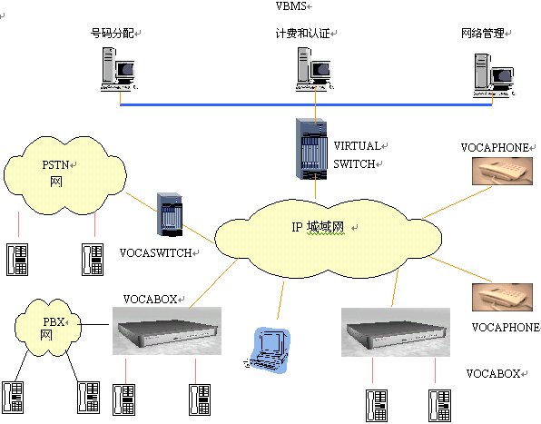 1 通過(guò)中繼網(wǎng)關(guān)(VOCA SWITCH)和傳統(tǒng)的PSTN以及移動(dòng)網(wǎng)絡(luò)連接