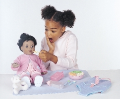 更象真正的孩子,每一個“我的夢想娃娃”都是一個不同的個體,有著不同顏色的頭發(fā)、眼睛,不同的膚色和種族背景。夢想娃娃要三節(jié)電池9V電壓供電。上電啟動后,夢想娃娃會立即提示“現(xiàn)在該給我起個名字了”。一旦建立了名字并得到確認后,就會有一個簡單的編程順序讓父母們設(shè)置當前日期、孩子的生日和慶祝日。