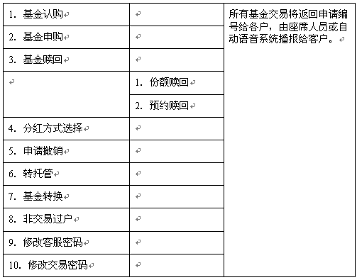 ·統(tǒng)一標(biāo)準(zhǔn):統(tǒng)一基金服務(wù)熱線的業(yè)務(wù)管理、業(yè)務(wù)處理和服務(wù)質(zhì)量體系標(biāo)準(zhǔn)。