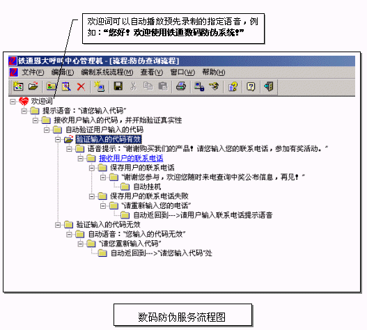 鄭州鐵通的"小成本"源于:采用了價廉物美的"鐵通恩大呼叫中心"系統(tǒng)平臺,充分利用"恩大服務(wù)流程編制器",直接編制"數(shù)碼防偽服務(wù)流程"。從搭建系統(tǒng)平臺,到防偽服務(wù)投入使用,前后只用了半天時間。