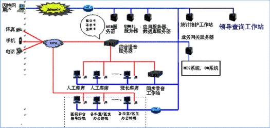 。。博宇公司醫(yī)院客戶服務(wù)中心系統(tǒng)與醫(yī)院已有技術(shù)支持系統(tǒng)(如MIS系統(tǒng)、辦公自動化系統(tǒng)等)緊密結(jié)合在一起,突破時空的限制,通過人工座席、自動語音/傳真、醫(yī)院相關(guān)工作人員等為客戶提供電話、傳真、電子郵件、因特網(wǎng)、手機(jī)、網(wǎng)絡(luò)電話等多種服務(wù)形式的周到、快捷、全方位的醫(yī)療服務(wù),為病人與醫(yī)院之間架起一座密切聯(lián)系的橋梁。