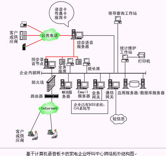 對于20個以下座席的中小型家電企業(yè)呼叫中心系統(tǒng),則建議使用基于計算機語音板卡的形式,可以減少家電企業(yè)投資,同時具有良好的系統(tǒng)性能;以確保合理的、較少的投入,獲取最佳的配置,滿足不同家電企業(yè)的需求。