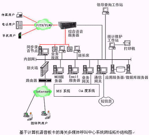 基于計算機語音板卡的海關(guān)多媒體呼叫中心系統(tǒng)一期工程網(wǎng)絡拓撲結(jié)構(gòu)圖