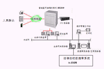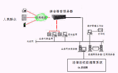 該系統(tǒng)的設計采用先進的三層CLIENT/SERVER網絡體系結構,集目前先進的計算機技術、通信技術、計算機電信集成(CTI)技術、多媒體呼叫接入技術、智能接入交換分配技術、數字語音處理技術、異構系統(tǒng)信息交互技術、INTERNET網絡技術、安全容錯技術、網絡組網技術等于一體,并與地級市司法行政部門/法院已有技術支持系統(tǒng)(如MIS系統(tǒng)、法律法規(guī)數據庫系統(tǒng)等)緊密結合在一起,突破時空的限制,通過人工座席、自動語音/傳真、司法部門相關人員等為群眾提供電話、傳真、手機等多種服務形式的周到、快捷、全方位的法律服務,為人民群眾與地級市司法行政部門/法院之間架起一座密切聯系的橋梁。