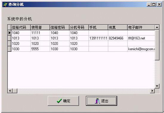 博宇科技自動總機語音信箱系統(tǒng)BYEVMS2.0產(chǎn)品維護(hù)程序用于電話分機管理、管理員工的語音信箱、Email管理等操作,部分界面如下: